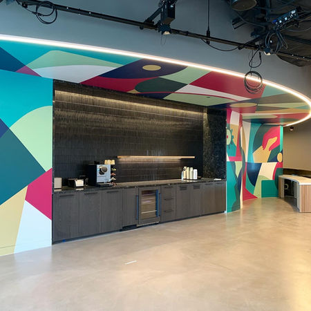 A new mural created for the Deloitte office in Chicago, and also my first ceiling mural. This project has been a year in the making and one of my most challenging projects so far. The design was inspired by grid patterns and innovations, with "easter egg" moments sprinkled throughout to symbolize connection and collaboration.